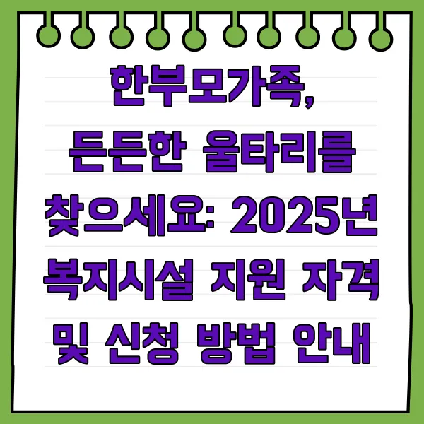 한부모가족, 든든한 울타리를 찾으세요: 2025년 복지시설 지원 자격 및 신청 방법 안내